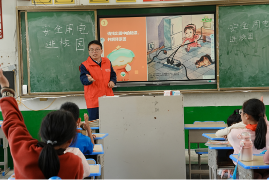 "洗完手能不能马上开灯?""发现电线冒火花该怎么办?"“有谁知道雷锋叔叔的故事?”在菜溪电力希望小学的"电力爱心教室"里,蒋祖立将安全用电知识与雷锋精神的火种播撒于孩子们的心间,通过互动问答,让安全意识与无私奉献的理念在孩子们心中生根发芽。活动之余,他还带领团队为学校的电力设施进行全面“体检”,确保每一处细节都安全无忧。