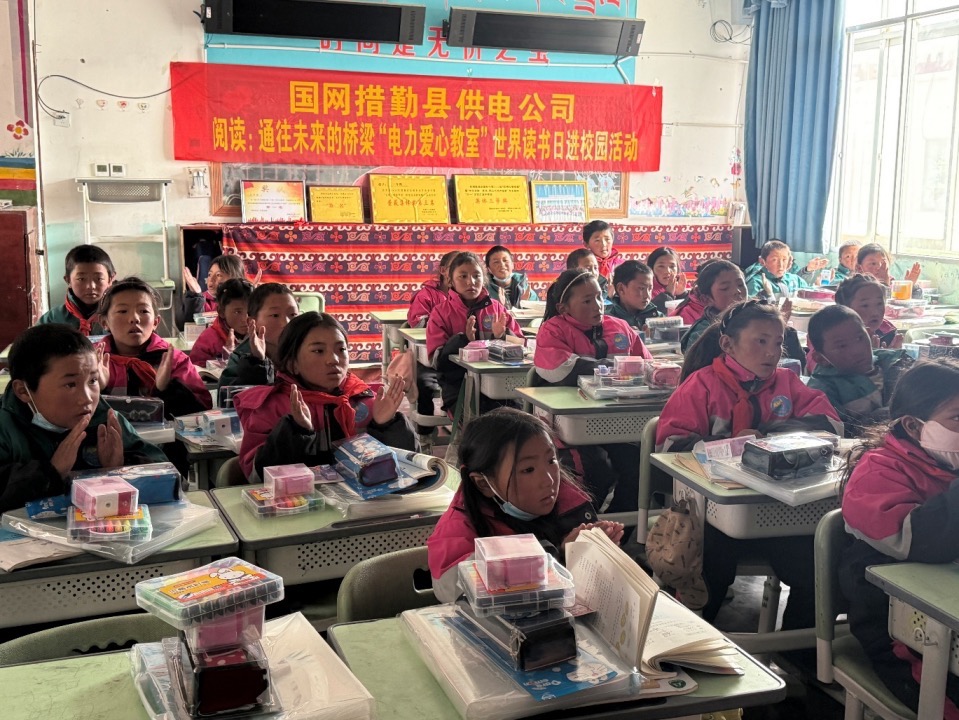 4月23日,第30个“世界读书日”,国网阿里供电公司联合国网措勤县供电公司依托国网“电力爱心教室”对措勤县达雄乡小学开展了“阅读﹒通往未来的桥梁”世界读书日进校园活动。
