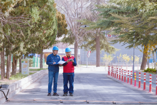 图为国网兰州供电公司安宁供电分公司员工在110千伏刘家堡变电站126仁寿山线利用无人机进行线路巡视测温,为兰州市第42届桃花会开幕式提供供电服务保障。史双绚/摄