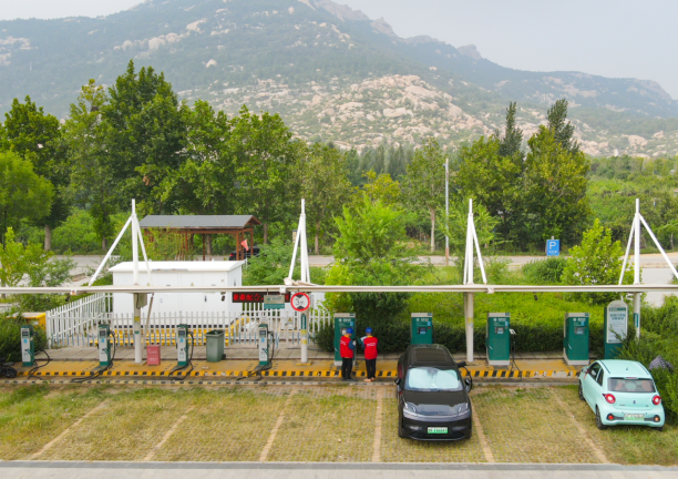 目前,国网山东电力在全省高速服务区建有430座充电站,可同时为2093辆新能源汽车充电。从2024年4月1日起,这些高速充电站实现全时段供应绿电,成为全国首批“高速服务区绿电充电站”,助力“绿色电能驱动绿色出行”。
