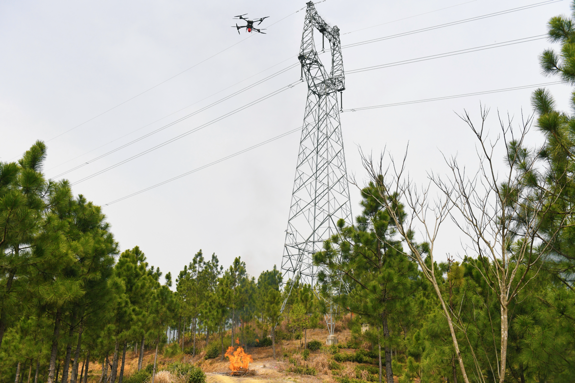 国网湖北电力员工使用无人机投掷灭火弹扑灭山火