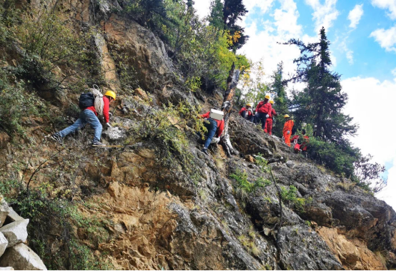 洛桑平措对藏中联网的守护并未止步。2022年9月,他作为项目负责人前往林芝市波密县负责左波线米堆冰川段覆冰改造项目。左波线是西藏电网与西南电网的唯一联络通道,项目位于川藏公路最险地段。时间紧、任务重,材料运输困难重重。面对落差20多米的山崖、滚落的飞石和肆虐的蚊虫,洛桑平措和转运队的队员们没有丝毫退缩。他们靠着徒步、攀绳、攀岩等方式,开辟上山通道。每人每天肩扛 40 公斤的物资,在崎岖的山路上往返近 8 个小时,雨水和汗水打湿了衣服,肩膀和后背被磨破了皮,但大家没有一句怨言,累了饿了,就找个地方休息,啃一口饼子,喝几口白水,便继续前行。“再坚持一下,我们一定能完成任务!” 洛桑平措热血澎湃地鼓励大家。