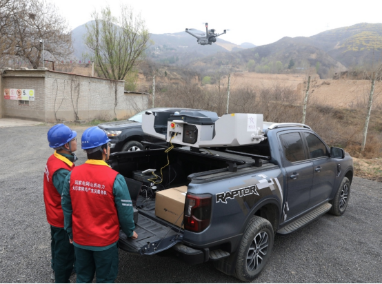 3月31日一大早,天气寒冷,中条山脉还被薄雾笼罩。国网临汾供电公司输电运检中心数字化应用班班长杨雪峰与班组成员就驱车来到220千伏汾闻线附近,他的班组今天要完成一项特殊的任务:首次应用车载无人机机巢进行巡视。9:30分,一架大疆M300RTK无人机从机巢腾空而起,螺旋桨的嗡鸣声打破了山谷的寂静,它的任务是对220千伏汾闻线进行例行巡视,这条输电线路穿行于密林之间,是山火高风险区段。