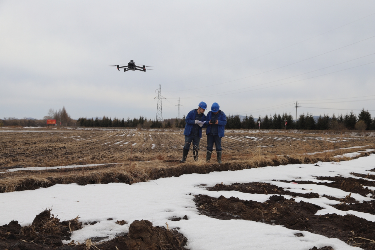 3月25日,黑龙江伊春供电公司员工利用无人机对220千伏锦新线47-48号塔间线路开展防山火特巡。