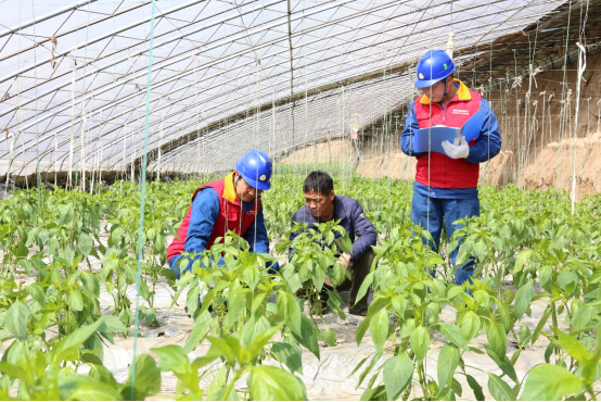 图为2023年2月15日,国网陵川县供电公司党员服务队队员刘文彪、付国奇在山西绿之金生物科技有限公司了解客户用电需求,帮助企业消除用电隐患。张浩然/摄