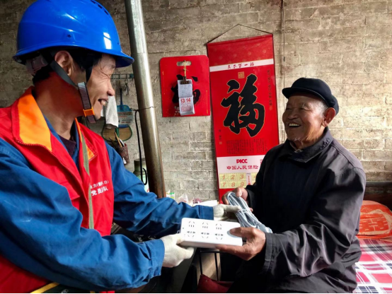 “王大爷,最近身体好吗?家里的米面油够吗?还需要什么药品吗?烧炉子取暖一定要注意通风,保证安全。”2月18日,在70岁的五保户王羊全老人家中,党员服务队王鹏云、赵锦荣等人一进门就询问老人身体和生活情况,帮老人检查是否有用电隐患或其他安全风险。而老人见到他们就像见到亲人一样高兴得合不拢嘴,拉着他们的手久久不愿松开。