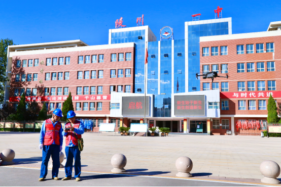 图为2024年8月28日,国网陵川县供电公司党员服务队队员郎亚军、薛小胜在陵川一中进行开学前线路巡视。张宁淳/摄