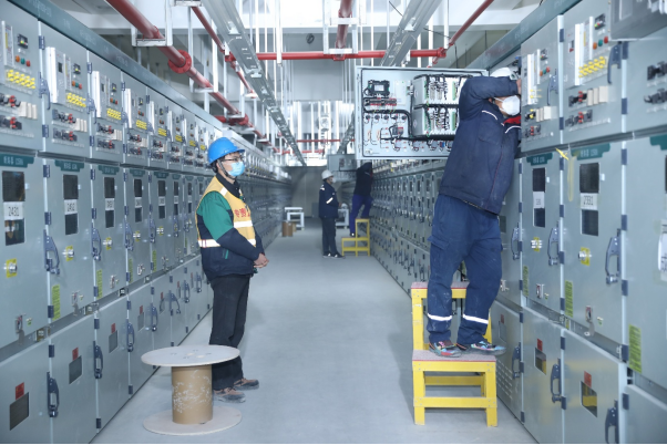 图为国网北京顺义供电公司110千伏会展输变电工程10千伏开关柜安装现场(侯占泉 摄)