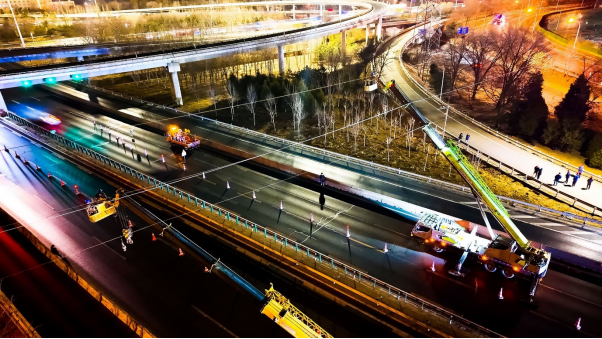 “网片已拉至指定位置,各受力点检查牢固可靠,封网工作完毕。”2月26日凌晨,随着最后一段183米保护网精准封网,国网北京海淀供电公司在学院路北端实施的220及110千伏高压线路迁改工程实现关键突破,完成京藏高速公路主辅路“空中跨越”的高难度动作。为满足地区高新技术产业建设需要,该迁改工程要对部分220及110千伏线路实施迁改,其关键环节面临176米宽的多车道高速跨越难题。国网北京海淀供电公司项目团队创新采用“机械展放+张力架线”技术体系,通过5台联动吊车实现导引绳高空传递,运用张牵机技术完成导线机械化展放,使施工效率较传统方式提升70%。项目团队历时45天攻克“多类型道路跨越”技术难关,制订12套专项施工方案,采用智能监测设备实时了解施工区域交通状况,确保高速公路通行安全。目前,工程已顺利进入全线架线阶段。
