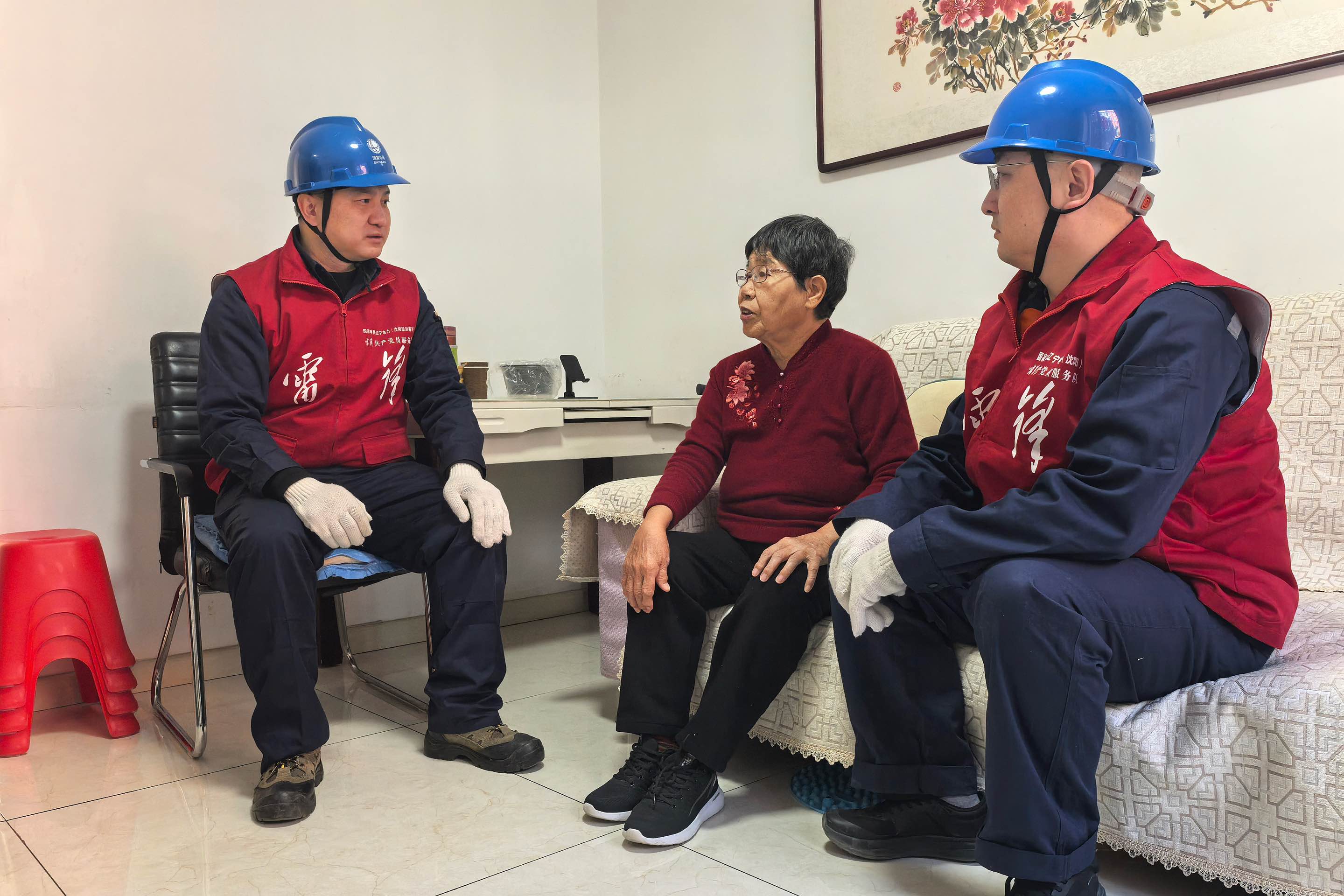 2月25日,国网沈阳供电公司(梁洪春班)雷锋共产党员服务队队长陈雄波走进大东区长安小区,为独居老人检查家用电器、为社区提供供电保障。