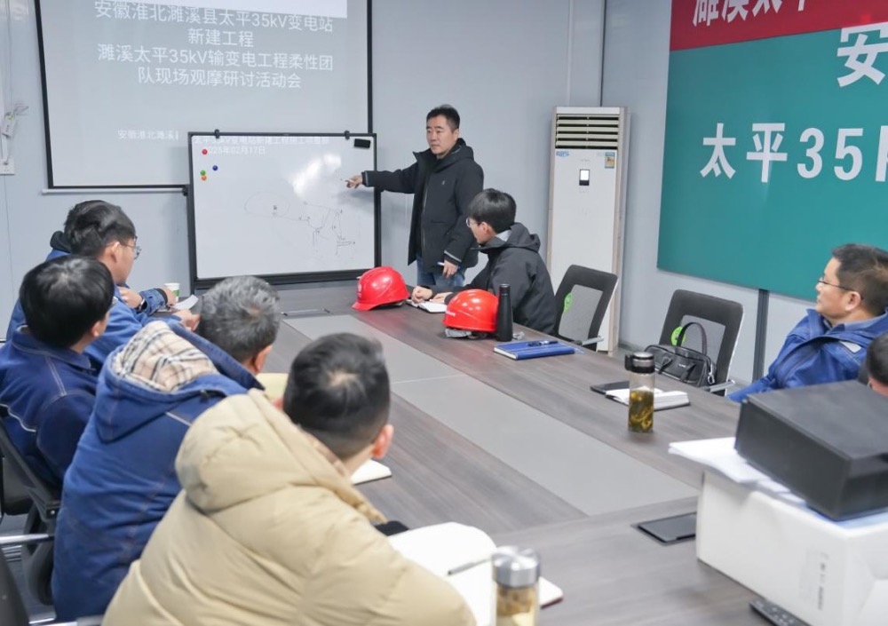 2月17日,国网濉溪县供电公司太平35kV输变电工程柔性团队在施工现场开展"沉浸式"业务交流。团队成员通过实地研学、经验共享、创新研讨等多元形式,有效促进跨部门协作效能提升,为工程创优注入新动能。