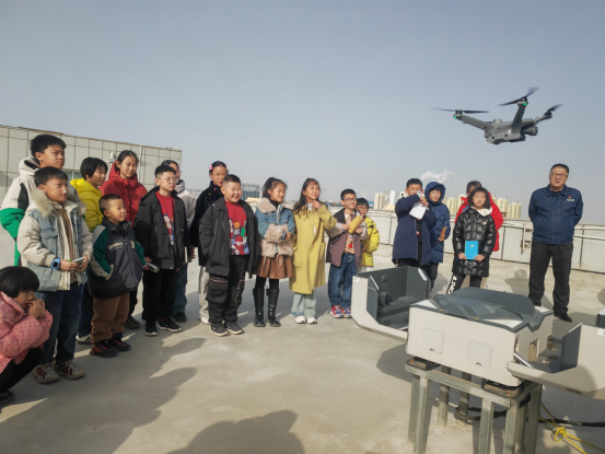 随后,孩子们来到配网部无人机班,近距离感受电力巡检的高科技。工作人员展示了无人机的飞行操作,并介绍了其在电力线路巡检中的重要作用。通过无人机的镜头,孩子们看到了电力线路的运行情况,了解了无人机如何帮助工作人员快速发现隐患,保障电网安全。这种“沉浸式”的体验让孩子们对电力行业的科技应用充满了兴趣。