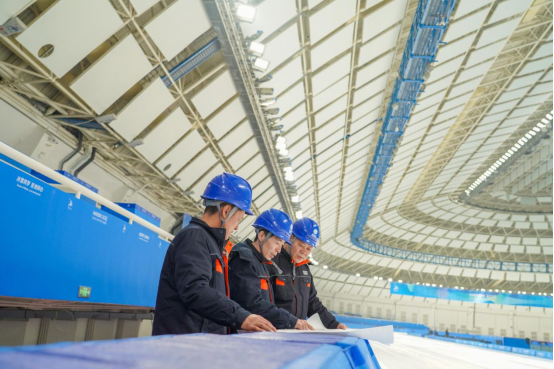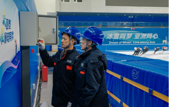 在场馆的布置上,速滑馆对制冷系统进行改造,还配备了先进的电动浇冰机,能够将冰面的平整度、温度调整到最好状态,有助于运动员场上更好的发挥。速滑馆棚顶还安装了电动排烟窗,比赛时,电动排烟窗的自然光可以减少冰面反射光,保障赛事转播效果。在改造期间,供电员工便提前驻守,掌握场馆用电需求,指导场馆电气化改造,并为场馆提供了“双路电源+不间断电源”的供电保障。