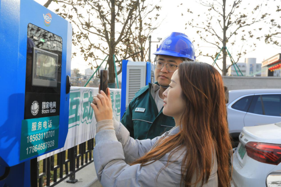▲济南起步区示范站,工作人员指导新能车主参与V2G车网互动活动。(何延海 摄)