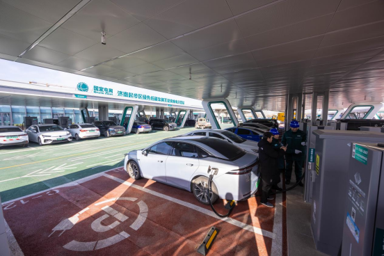 1月24日下午,济南市民王先生将自家电动汽车停放在济南市起步区车网互动充换电示范站,操作手机通过充放电小程序,完成电动汽车向电网放电,获得了放电奖励,并在e充电APP兑换为充电权益。