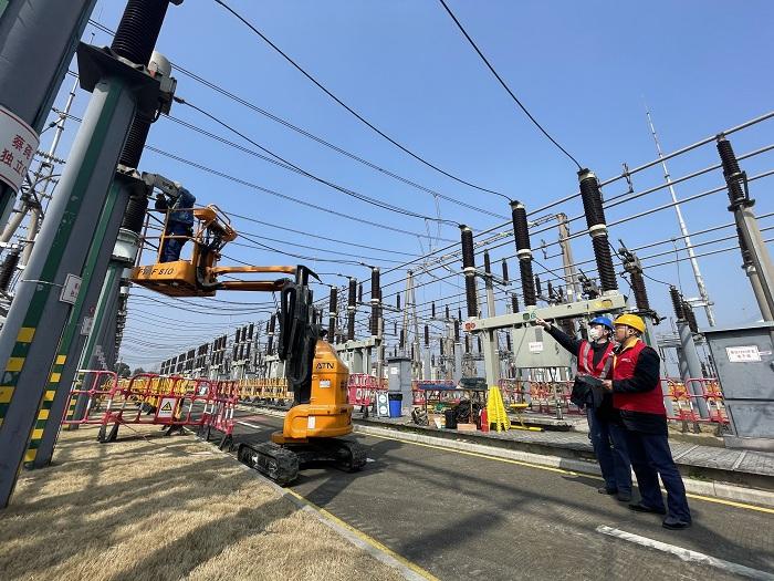 国网宁波供电公司员工在220千伏蔡郎变对春检现场开展设备主人安全监管。李宁/摄