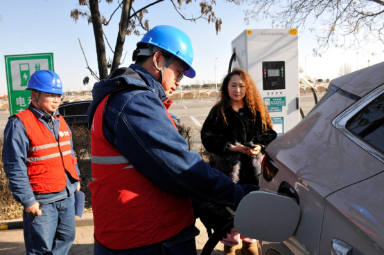 1月15日,在京藏高速宁夏银川市永宁服务区吴忠方向,国网宁夏电动汽车服务有限公司工作人员在检查充电设施运行情况。