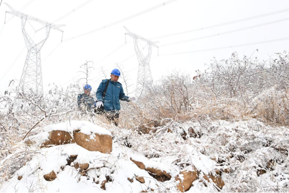 国网淄博供电公司员工巡视电网设备保障冬季电力可靠供应
