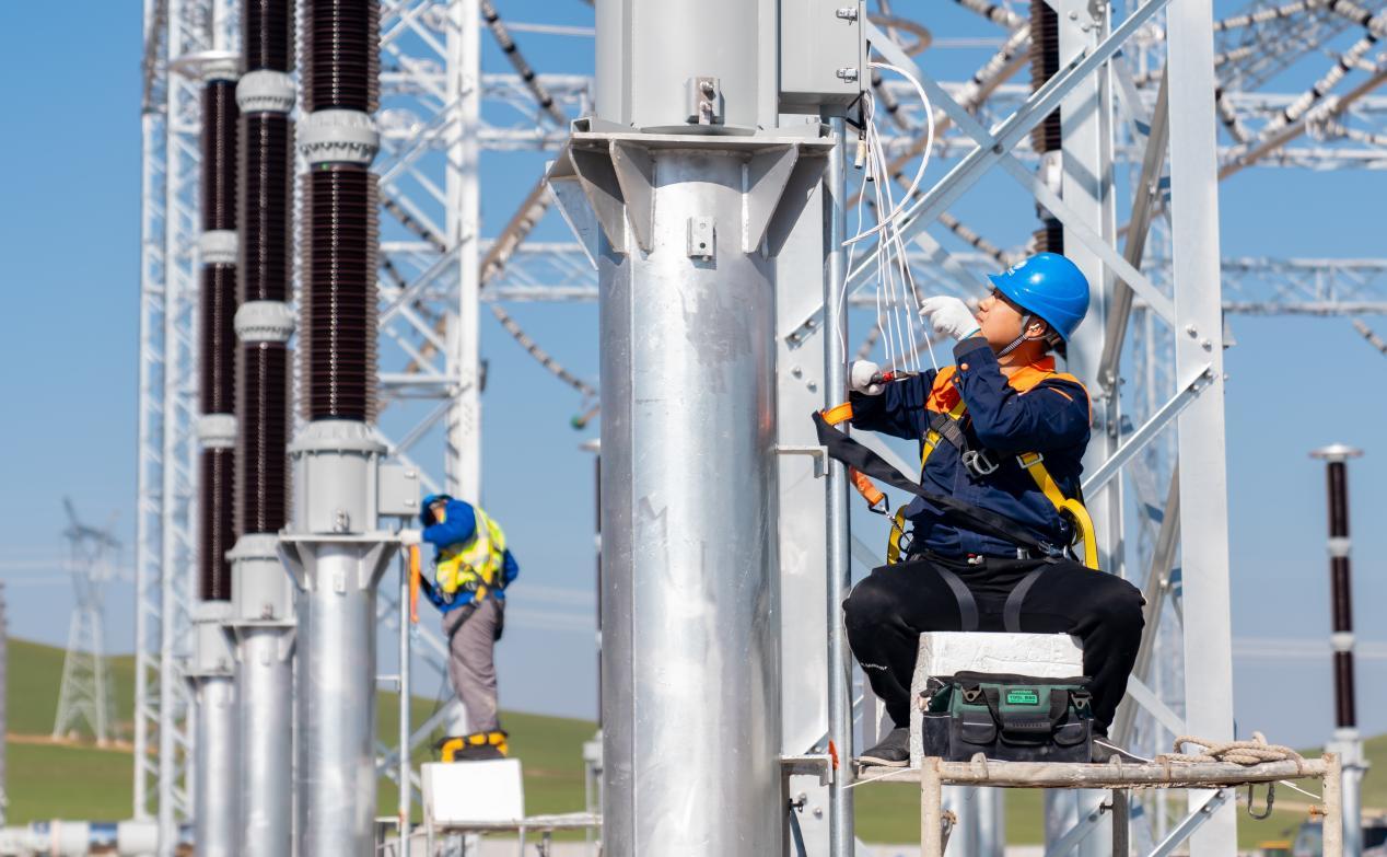 技术人员在江苏能源乌拉盖500千伏送出工程白音华开关站开展电流互感器二次接线作业