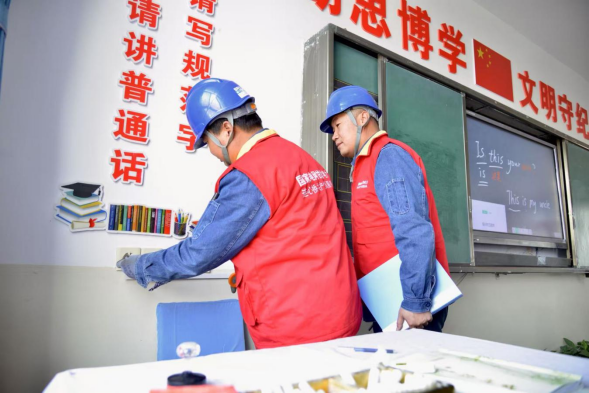 随后,为切实提高校园配电设施的安全性,保障师生安全用电,网格员们对学校供电线路以及配电设施进行检查维护,重点对校园内的教室、餐厅、宿舍的开关、插座、容易漏电的设备进行全面检查,对可能出现问题的线路接点进行了紧固,对排查出线路绝缘老化、插座开关接触不良等安全隐患进行处理,确保安全检查不留死角,保证校园用电安全可靠。