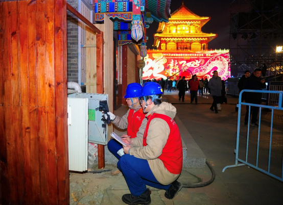 图为:12月31日晚,国网天津城西公司南开供电服务中心组织共产党员服务队前往“鼓楼津声”跨年灯光秀现场,对相关线路和设备开展安全隐患排查工作,保障活动顺利进行。董开泰/摄