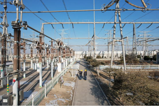 图为2025年1月1日,国网宁夏超高压公司职工在宁夏灵武市临河镇银川东换流站进行巡视保障华北地区人民群众节日用电。周序鹏/摄