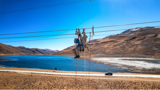 图为:2024年10月31日,国网西藏电力首次完成世界海拔最高4450米输电线路带电作业。赵清鹏/摄