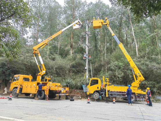 当天9时,工作人员抵达现场,穿戴好绝缘防护装备后,攀爬电杆安装固定新电杆。随后,在工作负责人指挥下,2辆绝缘斗臂车就位,4名高空带电作业人员升空,有序完成绝缘遮蔽、金具绝缘子组装、导线与金具连接、绝缘紧线工具拆除、绝缘设备恢复、引流线搭拆等一系列操作,整个作业耗时近4小时。