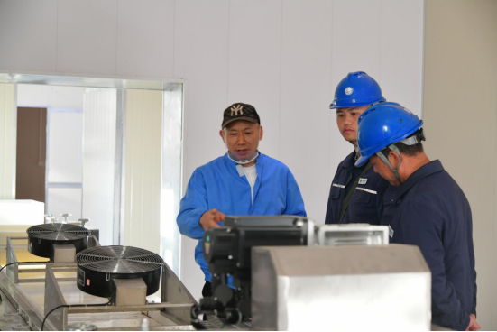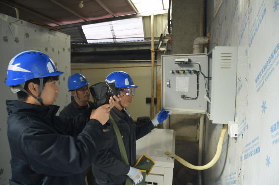 ▲国网松溪县供电公司工作人员正在检查百年蔗红糖冷库用电设备运行情况 蔡政/摄