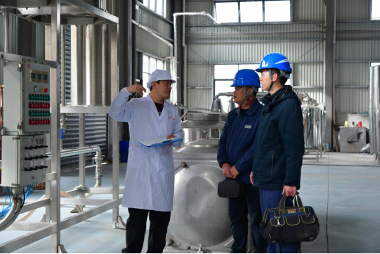 ▲国网松溪县供电公司工作人员在蔗酒加工车间收集电能蒸馏设备用电需求。 吴惠兰/摄