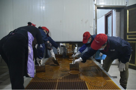 ▲蔗农们正在紧抓时间制作百年蔗红糖 蔡政/摄