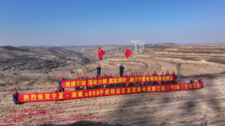 12月6日15时25分,宁夏-湖南±800千伏特高压直流输电线路工程宁2标段导线全部离地实现贯通,较里程碑计划提前26天。