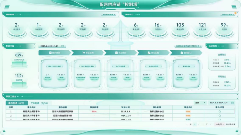 为实现配网供应链风险的智能管控,国网冀北物资公司建立了配网供应链事件管理中心,针对配网断链断供、协议超期、执行异常三类典型风险,依托配网供应链模型库智能感知供需变化,在协议执行过程中实时监测,快速响应供应链中的各类业务需求和突发情况,通过事件、工单闭环管理供应链中的异常事件和风险点,提升了供应链工作质效和灵活性。