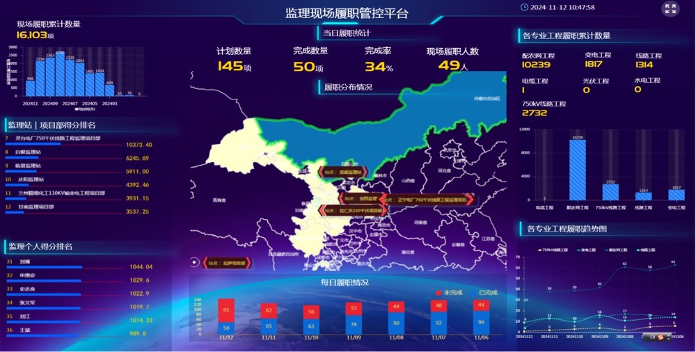 作为工程监理方,甘肃科源电力集团电通设计公司积极服务数智化电网建设转型升级,紧密结合监理工程点多面广、作业环境繁杂、现场管控难度较大等特点,开发集定位签到、现场检查、审核确认、履职记录、数据导出、信息反馈等功能于一体的电网工程现场监理履职数智化平台。