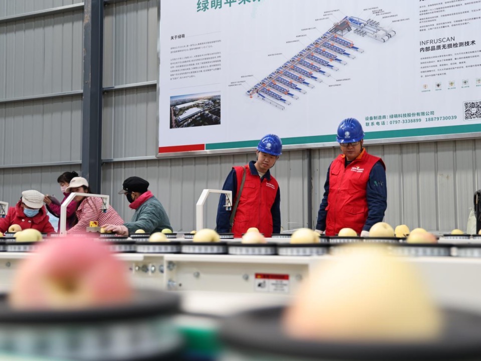 图为:国网庆阳供电公司服务专班走进镇原县居立苹果产业园,对苹果自动分拣车间内的电力设备开展安全用电检查。郑朝宁/摄