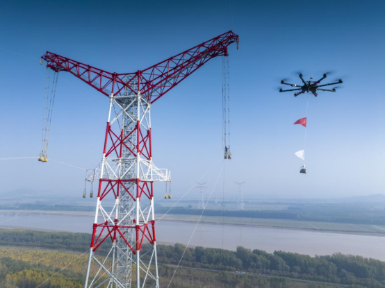 10月31日上午11时,随着牵引板在百米高空穿过黄河北岸铁塔的导线滑车,±800千伏陇东—山东特高压工程输电线路山东段成功跨越黄河。