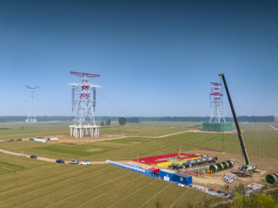 由山东送变电工程有限公司施工的黄河大跨越工程,北岸位于聊城东阿,南岸位于济南平阴,北岸塔高159.5米,为工程全线最高塔。大跨越耐张段长约2806米,采用“耐-直-直-耐”跨越方式施工,工程山东段将于年底前全线架通。
