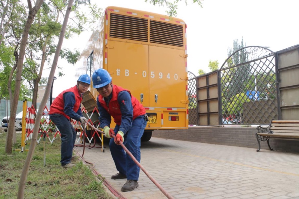 国家电网甘肃电力(雄关)连心桥共产党员服务队为当地乡镇群众顺利度过夏收、夏耕、夏灌敷设供电线路。姜欣蓉/摄