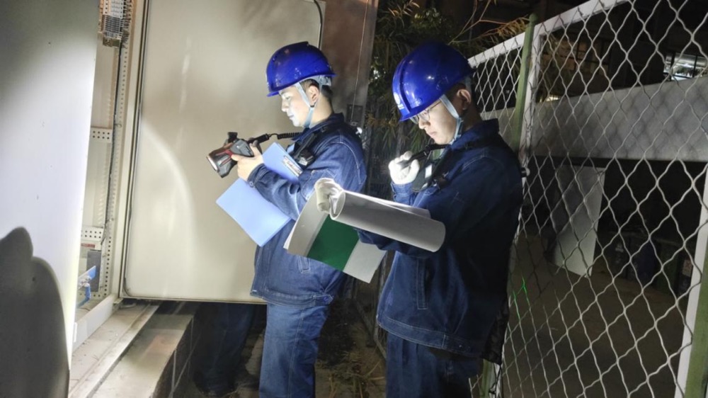 国家电网甘肃电力(嘉峪关雄关)连心桥共产党员服务队在嘉峪关市铁北社区对地下室相关电力设施进行实地勘查。姜欣蓉/摄