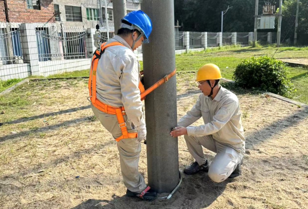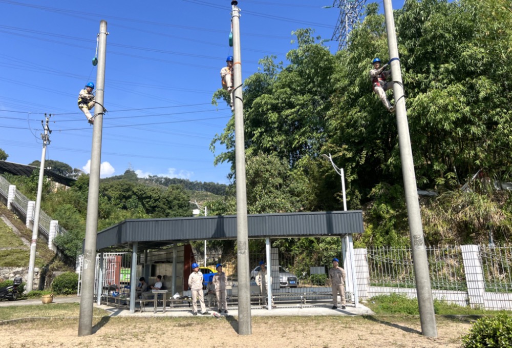 “登杆作业必须全程扎安全带,登杆过程碰到障碍物时,不能脱离安全带移动……”在当天的登杆培训中,浦城公司带电班技术员翁华清一步步分解登杆及杆上作业技术要点,并演示登杆全过程,期间详细讲解脚扣冲击试验、脚扣和安全带配合使用技巧等。参培人员在登杆前对脚扣、安全带等安全工器具进行检查,观察电杆是否有伤痕裂缝,随后进行登杆。采用“理论+实操”的方式,现场进行演训,着重加强和巩固员工的技能操作水平,确保参培人员人人能登杆、个个有硬功。