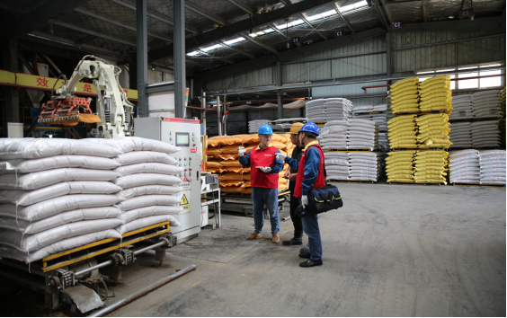 ▲国网山东电力彩虹共产党员服务队检查粮食加工企业电力设施。