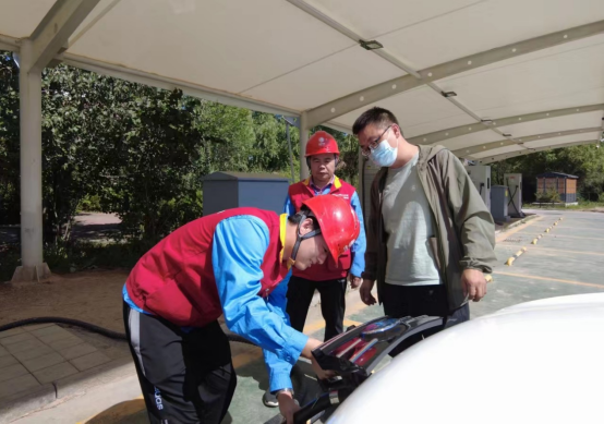 ▲国网青海电力公司员工为新能源车主提供充电帮助指导。马清摄
