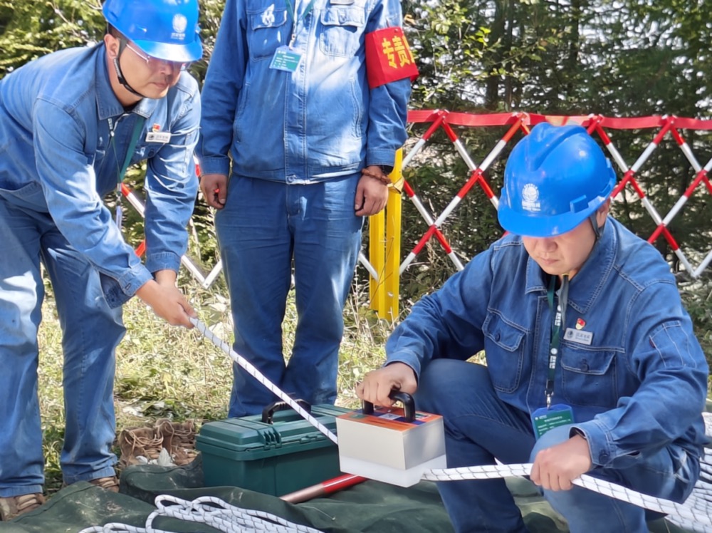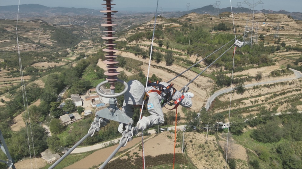 “报告工作负责人,申请进去等电位。”“同意!”随着工作负责人一声令下,伴随着“滋啦”一声,作业人员进入强电场。只见作业人员迅速翻上带电导线,小心翼翼地靠近缺陷部位,熟练地操作着工具,将开口销子准确安装到位并完成开口。每一个动作都充满了力量和技巧,每一个环节都彰显着他们的专业素养。秋日的阳光洒在大地上,330千伏晒杏二线18号高耸的铁塔在蓝天白云的映衬下格外壮观,电力工作人员身着屏蔽服,佩戴着各种安全装备,犹如一个无畏的勇士,准备迎接这场挑战。