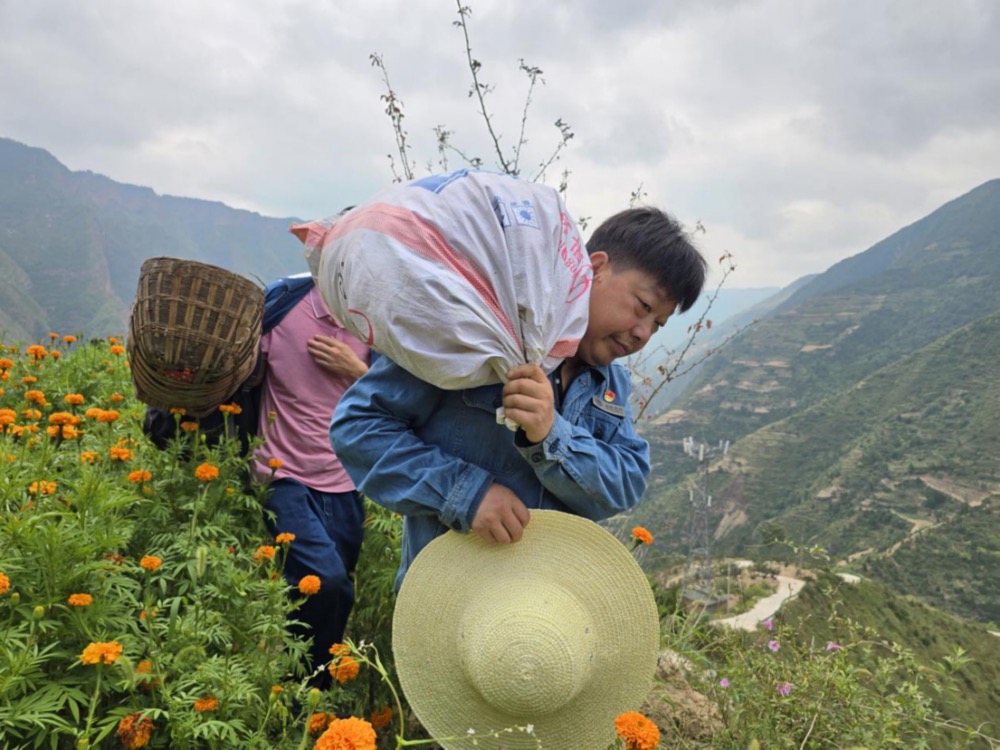 金秋九月,风清气爽。位于甘肃西和县大桥镇赵尧村的万寿菊花迎来最后一茬采摘,橙黄色的菊花开出了今年好“丰”景。9月22日,在第七个“中国农民丰收节”之际,国网西和县供电公司驻村帮扶队抢抓时令,志愿帮助农户采摘万寿菊,助力农户增产增收,以实际行动践行为民服务宗旨。