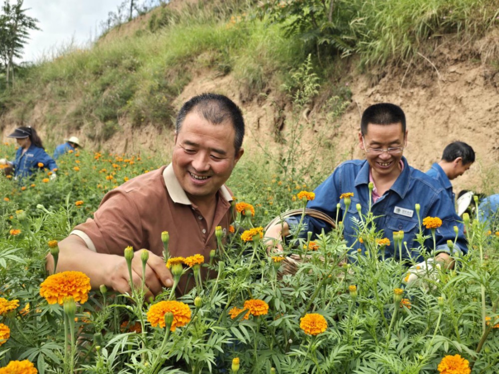 万寿菊属菊科草本植物,可观赏、能食用、可入药,其根解毒消肿,花瓣具有清热解毒、化痰止咳的功效,尤其是近年来万寿菊提取物叶黄素在抗蓝光、护眼保健方面的广泛应用,种植加工市场前景广阔。万寿菊种植作为一项高附加值特色产业在西和县各乡镇形成规模化发展态势,每到花期,田间地头的盛开的万寿菊在其它农作物的衬映下显得尤为亮眼,呈现出一幅田园美景,已然成为农户增收增效的“致富花”。