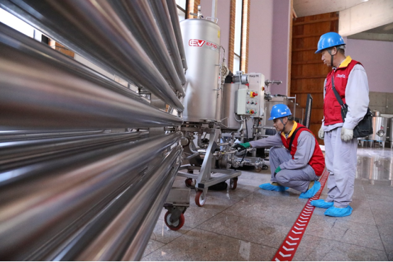 山西尧京酒庄占地面积3500余亩,总投资4.68亿,年产葡萄酒500吨,葡萄汁1000吨,产品销往临汾、太原、上海、广州等地,是一个集葡萄种植、酿造、文化展示、休闲观光于一体、极具特色的精品酒庄。在酿酒车间里,葡萄经过光学粒选机筛选、脱梗、脱粒后,再经由气能压榨机榨成汁,通过降温、除菌、过滤、消毒等一系列工序,再放入冷藏库中发酵。一桶桶葡萄酒需要在这里存放1-3年,进行稳定处理后,才能进行瓶装、贴标销售。冷藏库的温度必须常年保持在15度以下。大邓供电所员工为客户仔细排查设备用电隐患,使中央空调温度、湿度控制在合理的区间,确保葡萄酒的品质、口感俱佳。