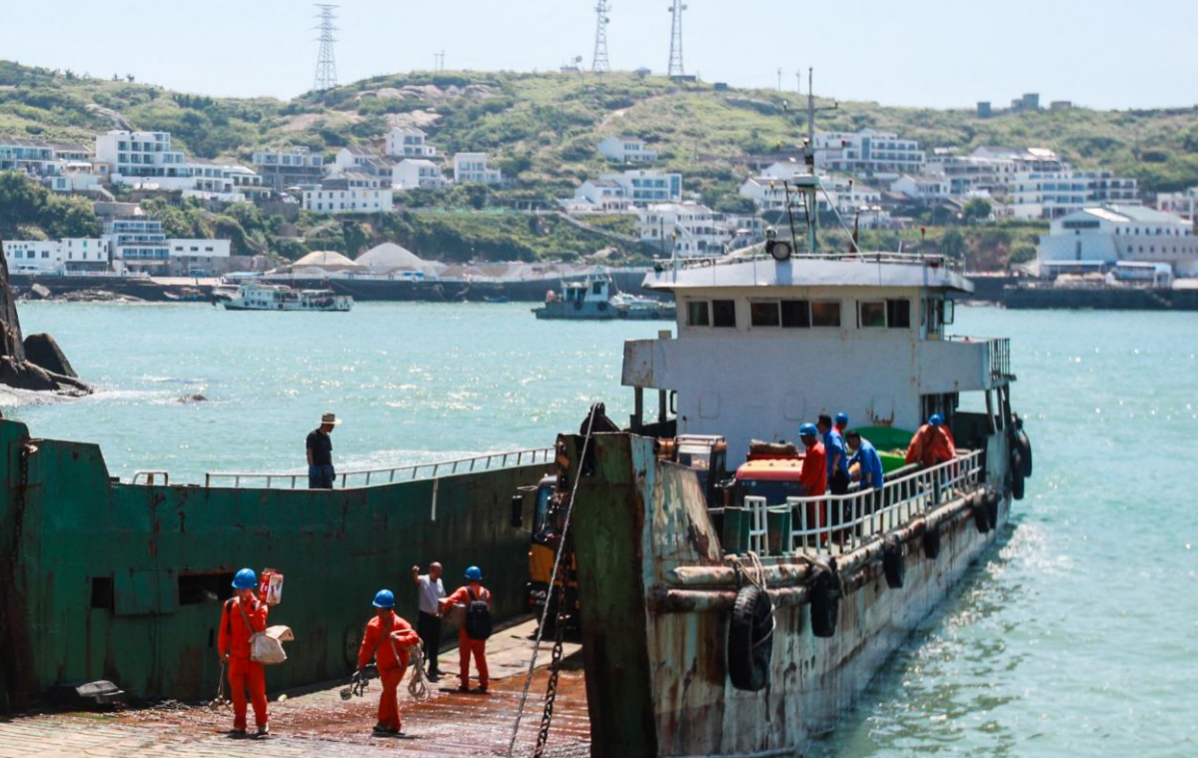 9月13日,国网舟山供电公司“岛自为战”保电人员携带防台风抢修装备进驻偏远海岛东福山。王云云 摄