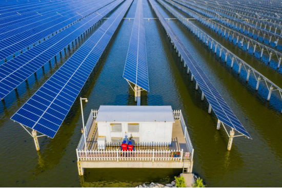 国网滨州供电公司员工巡检友发“渔光互补”项目。(刘辉 摄)