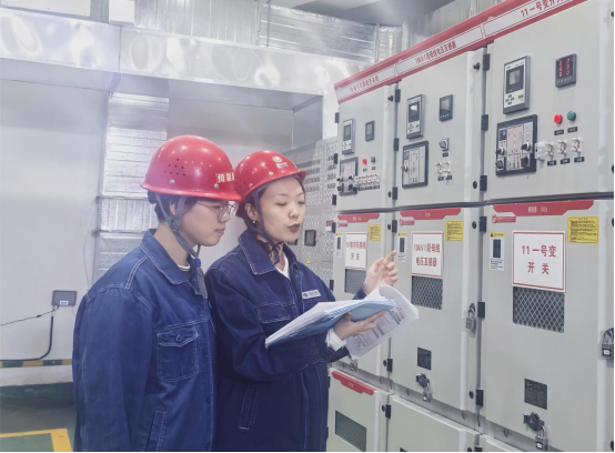 图为:9月11日,国网兰州供电公司员工刘晓波、赵雨霏在兰州市城关区五里铺城中村改造项目供电前对保护定值进行核对。冯泽铭 摄