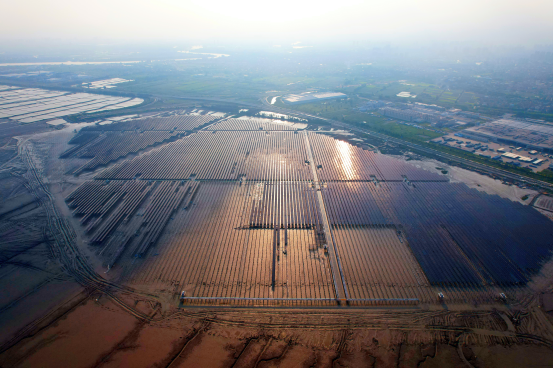 不仅如此,眼前这片“电力森林”,还兼具渔业养殖功能。该项目现场负责人李军介绍,“板上发电、板下养殖,实现水域空间的全方位立体运用。此外,水体对光伏组件及电缆的降温冷却还可显著提高发电效率,实现渔、电、环保多丰收。”